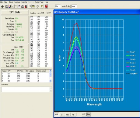 應用領域:化妝品、防曬用品、防紫外布料、感光乳劑等的SPF值測量。